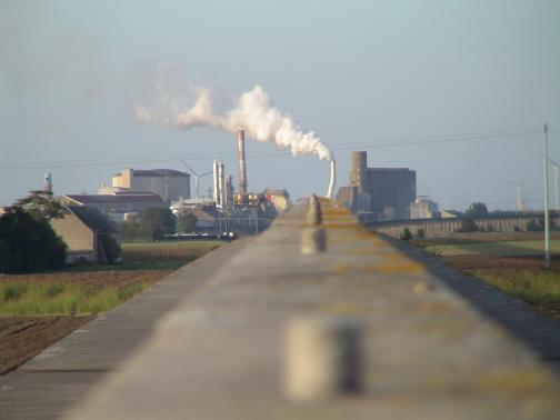 Au fond l'usine d'Artenay déjà très loin se laisse déformer par la chaleur du rail. La cheminée est parfaitement droite dans la réalité.
